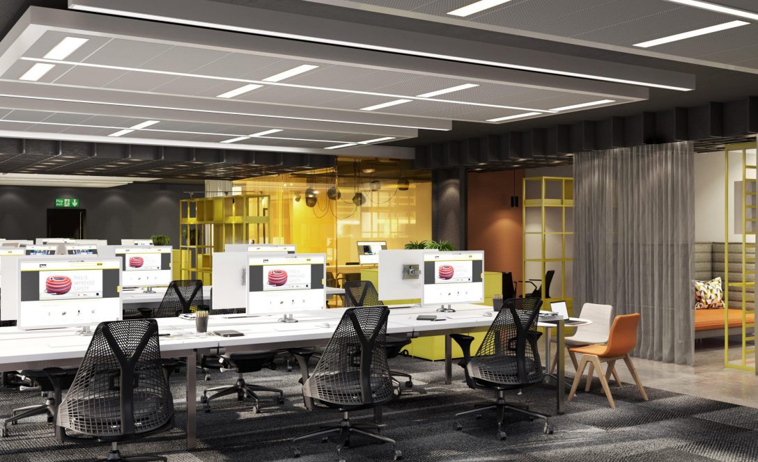 A company struggling with low morale and absenteeism upgrades to ergonomic furniture, natural light integration, and breakout areas.